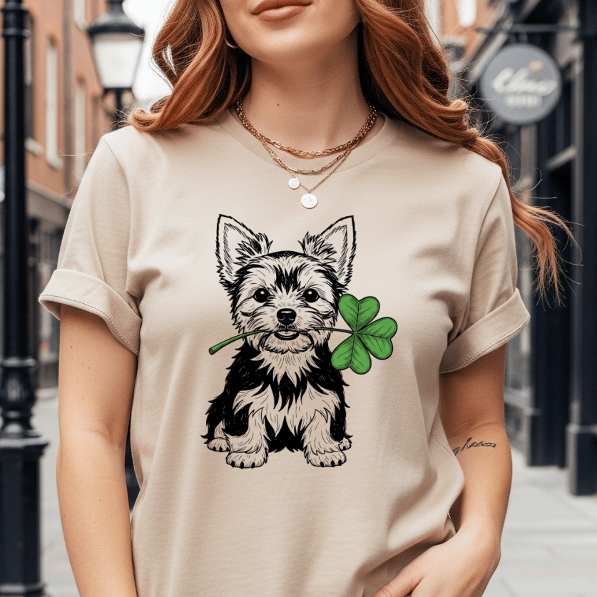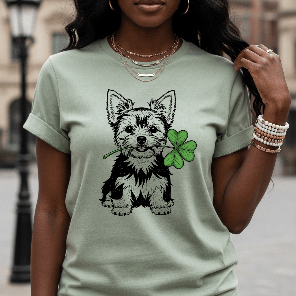 Celebrate Saint Patrick’s Day in adorable style with this Gildan® Modern Classic Fit T-shirt featuring a cute Yorkshire Terrier holding a lucky shamrock. Designed for comfort and everyday wear, this high-quality tee offers a timeless fit, soft fabric, and durable print that makes it perfect for parties, parades, Irish festivals, or casual outings. The charming Yorkie graphic adds a fun and festive touch, making it a must-have for dog lovers, Yorkie moms, and anyone who enjoys unique holiday apparel. Pair it with jeans, leggings, or layered looks for an effortlessly stylish Saint Paddy’s Day outfit. This shirt also makes a thoughtful gift for pet owners, friends, and family who want to show their Irish spirit with a playful twist. Whether you're celebrating your heritage or just feeling lucky, this cute shamrock Yorkie T-shirt brings smiles and comfort all day long.