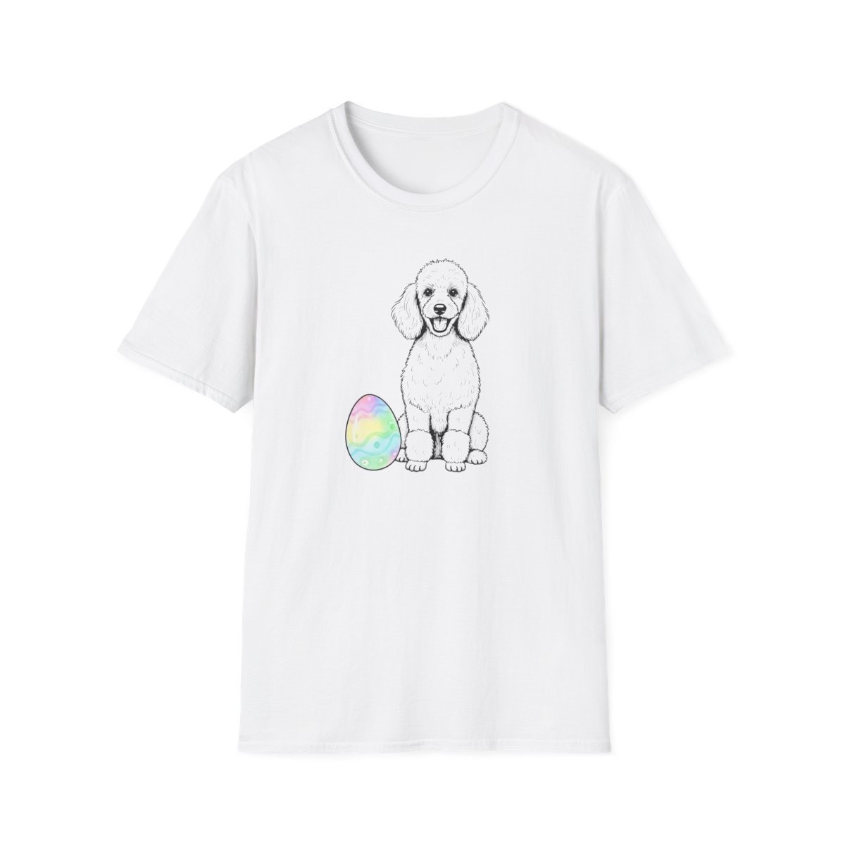Easter Egg Poodle T-Shirt — Cute Puppy with Pastel Tie-Dye Egg